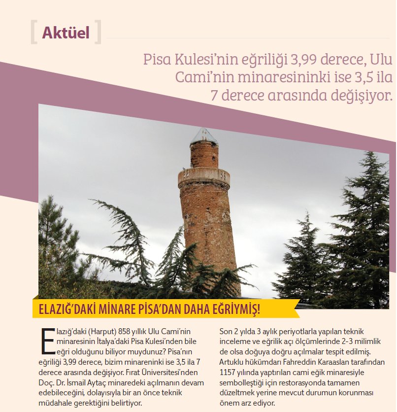 harput ulu cami pisa kulesi ni solladi el aziz gazetesi elazig haberleri