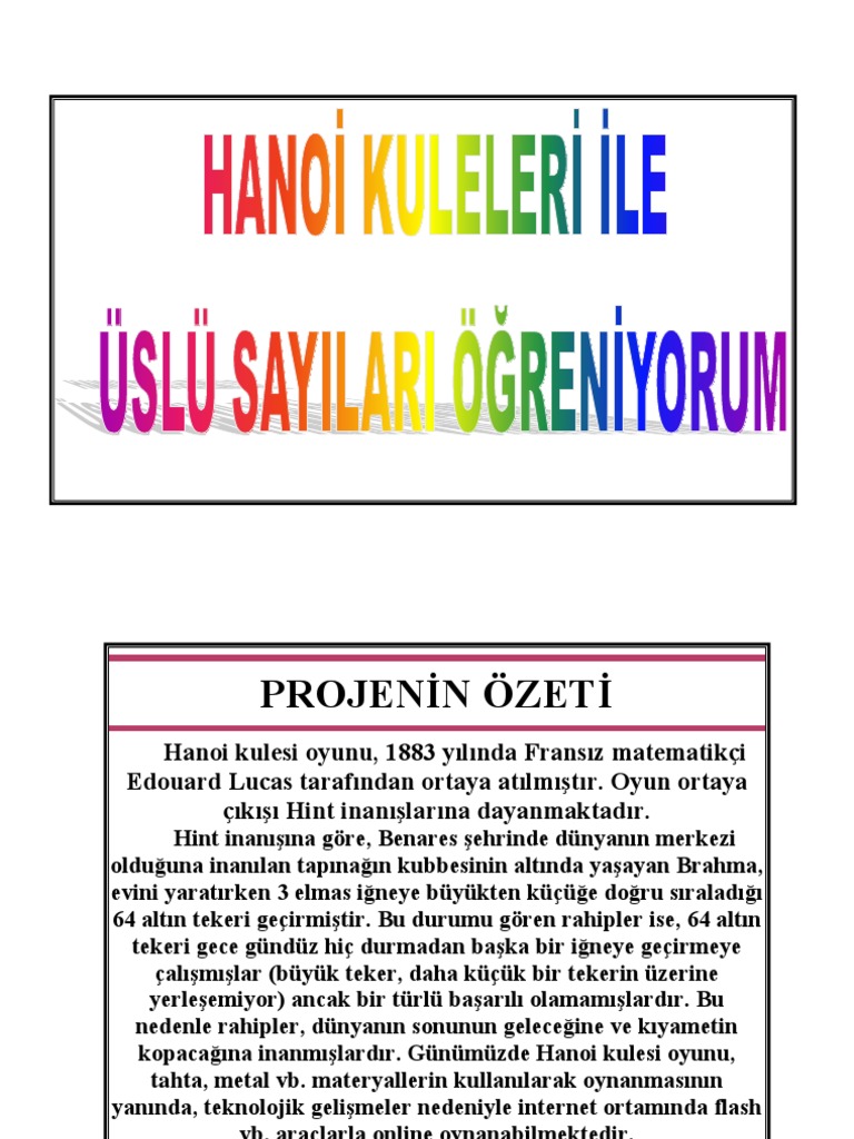 tubitak 4006 matematik proje ornegi hanoi kuleleri teknolojik ogretmenler